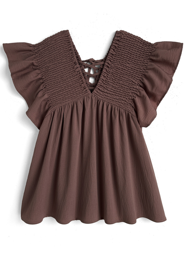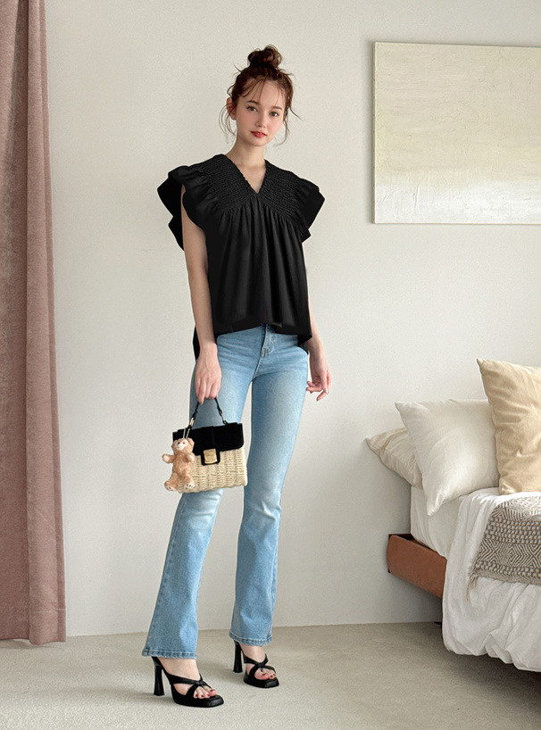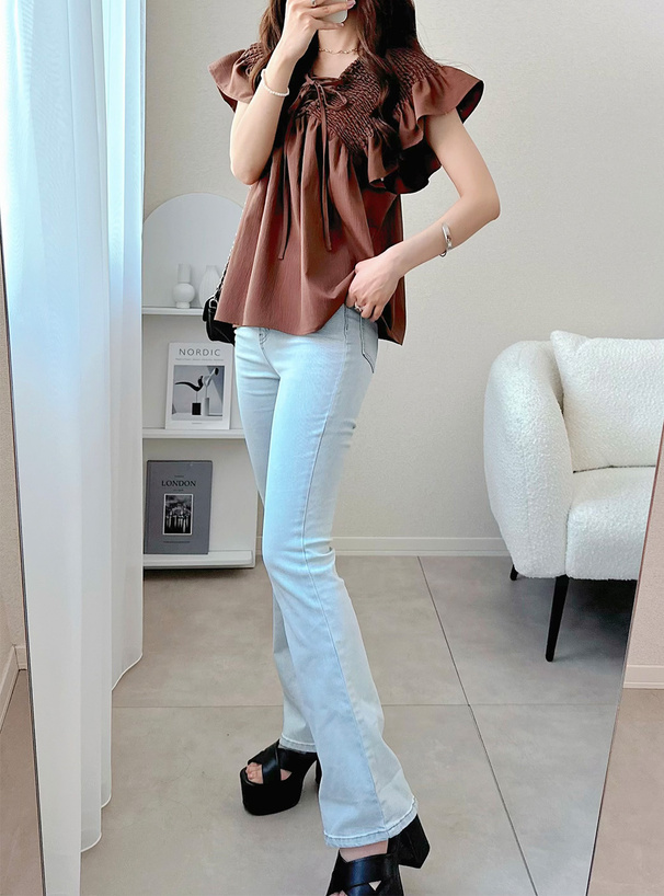 前後2wayシャーリングレースアップフリルブラウス[al299]
