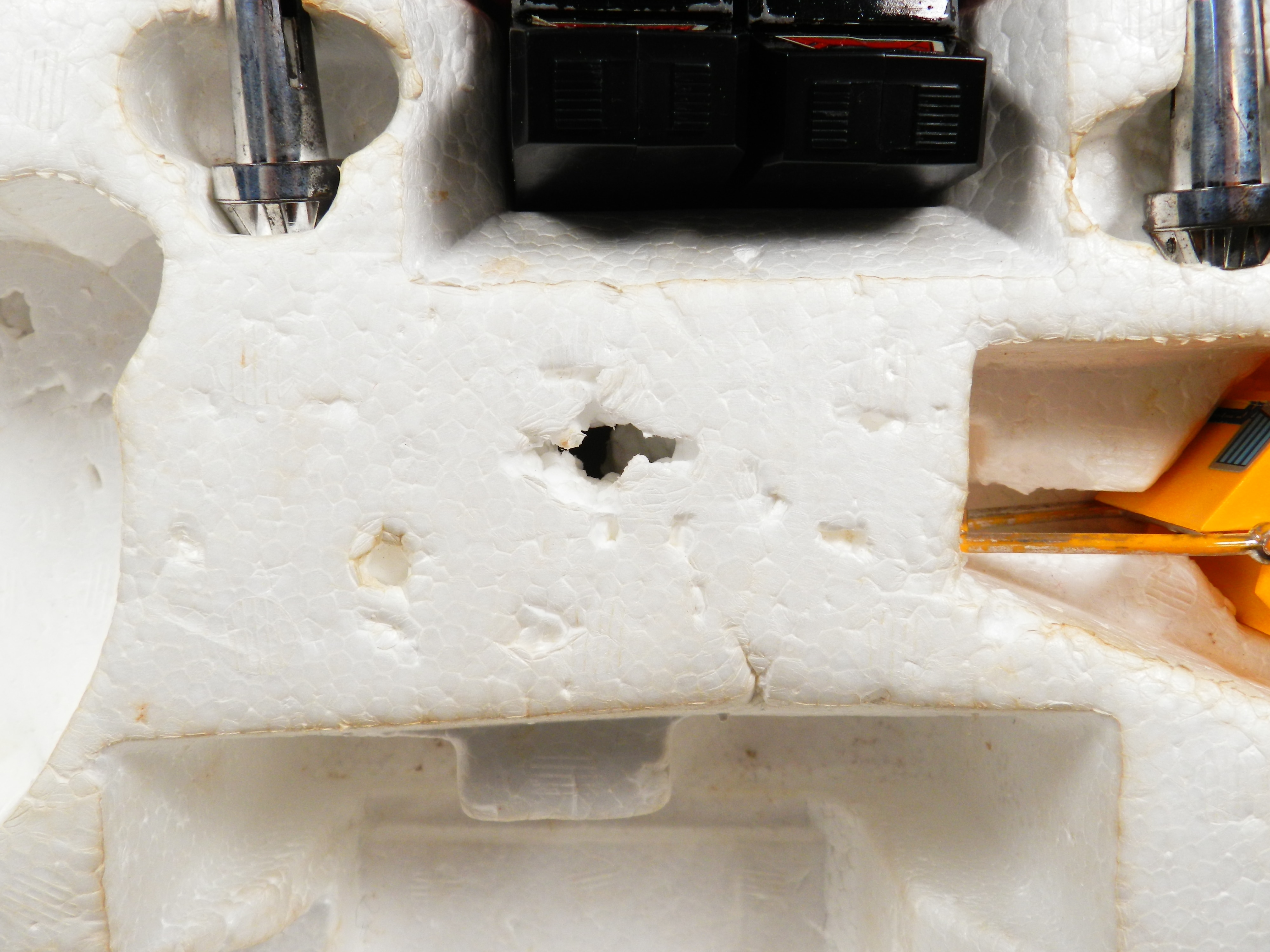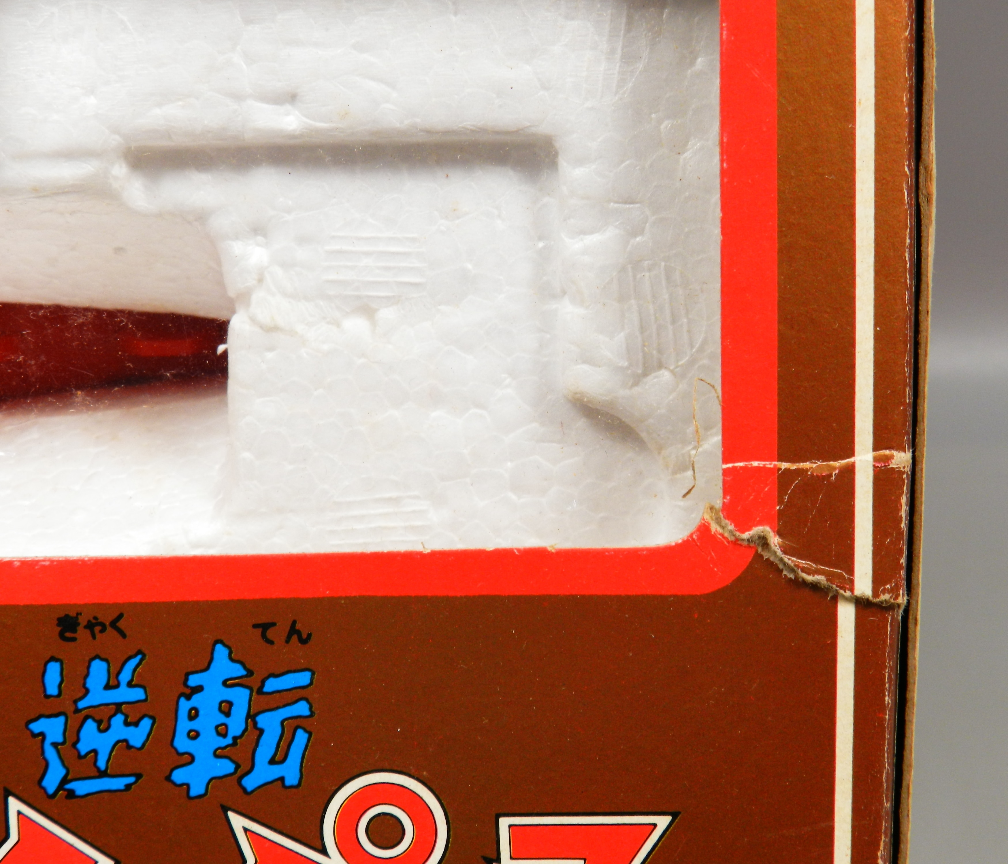 商品状態: 開封。パッケージいたみ大。破れ大。ヤケ。本体いたみ大。汚れ。メッキいたみ。欠品多数。頭部とパンチ、紙類欠。付属品は画像に写っている物で全てです。配送途中で破損の可能性あり。ジャンク品。
