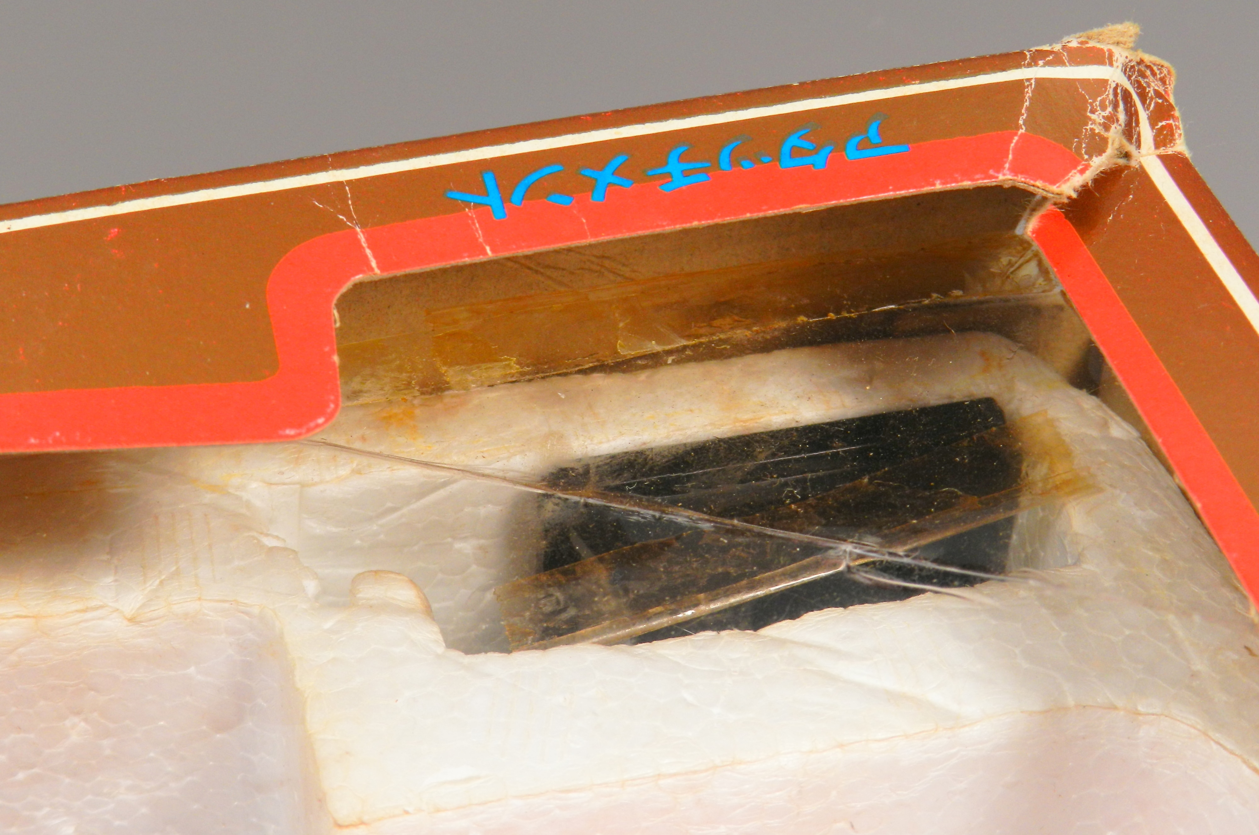 メーカーによる検品のため開封され再びテープ留めされたもの。中は未使用