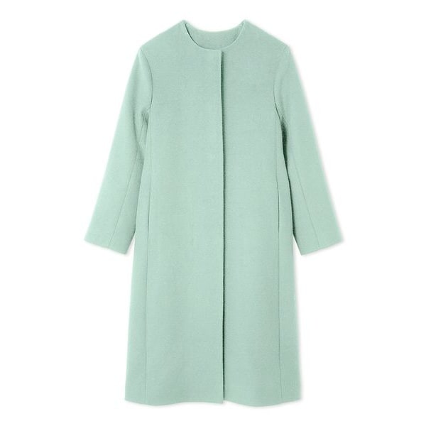 【送料無料】HERMES エルメス カシミヤ混 ノーカラー ロングコート ミントグリーン レディース ジャケット アウター