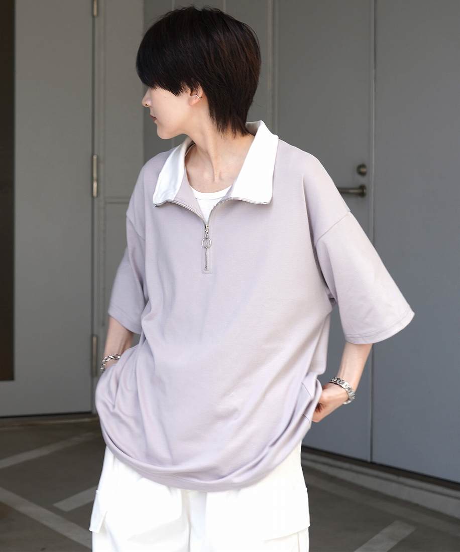 トレンドのハーフジップをきれいめに落とし込んだ粋な1枚。