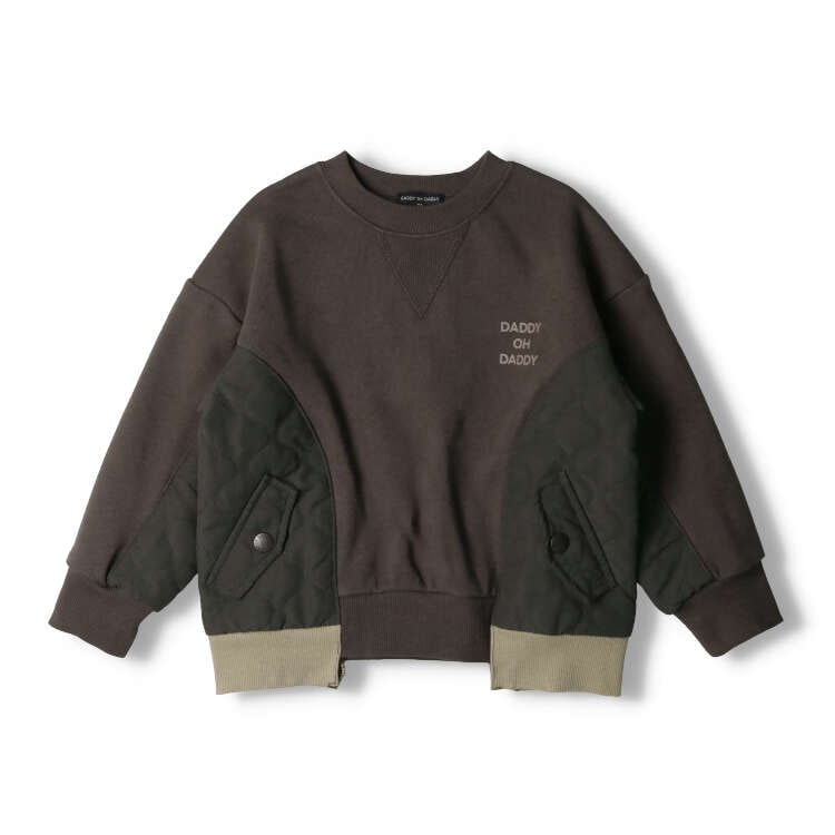 裏毛とキルト素材の切替ドッキングデザインのトレーナー、スウェット。トレンド感のあるアイテム。胸にはロゴのプリント入り。同じデザインのスクールサイズ(150160cm)はV50605になります。(ベビーサイズのみ肩ボタン仕様になります。)【アイテム】トップス カジュアル お洒落 オシャレ かっこいい かわいい 可愛い 普段着 デイリーウェア お出かけ着 お外着 お外遊び着 子ども服 こども服 男児 男の子 ボーイズ キッズ ベビーサイズ トドラーサイズ 幼稚園 保育園 小学校 通園 通学 小学生 2023年秋冬物新作 丸高衣料 ロングスリーブ 長袖 ブラック 黒色 ベージュ ダディオダディ