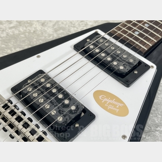 この度エピフォンは、ギブソン・カスタムショップとの連携のもと、カークのオリジナルギターを念入りに再現した Epiphone Kirk Hammett 1979 Flying V をリリースします。ボディ、ボリュート付きワンピース・ネック、「スペード」ボタン付きGrover® Rotomatic® マシンヘッド、そしてカスタム・ブリッジを搭載。エレクトロニクスも一流で、ギブソンUSA キャリブレーテッドT タイプ・ハムバッカー ピックアップ、™CTS ポテンショメーター、Orange Drop®コンデンサー、Switchcraft® 3ウェイ・ピックアップ・セレクター・トグル・スイッチ、1/4 "アウトプット・ジャックを装備。ヘッドストック裏にはカーク・ハメットのロゴがあしらわれています。赤い豪華な内装のブラック・ハードシェル・ケースが付属します。
