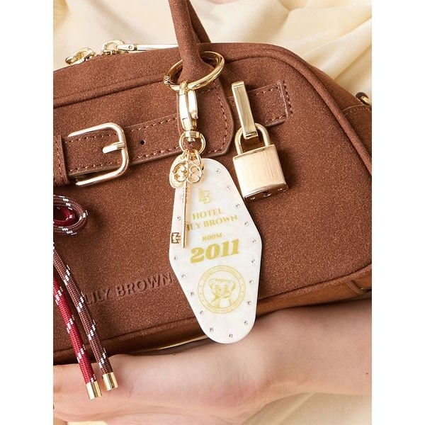 架空のホテル「LILY BROWN HOTEL」をイメージしたレトロキーチャーム。LilyBearの肖像にブランドコンセプトを添えた、特別なグラフィックが魅力です。ルームナンバー“2011”は「LILY BROWN」が誕生した年へのオマージュ。ナスカンとカラビナが付いており、さまざまなバッグに簡単に取り付け可能。世界観を楽しみながら、コーディネートのアクセントとして活躍してくれます。