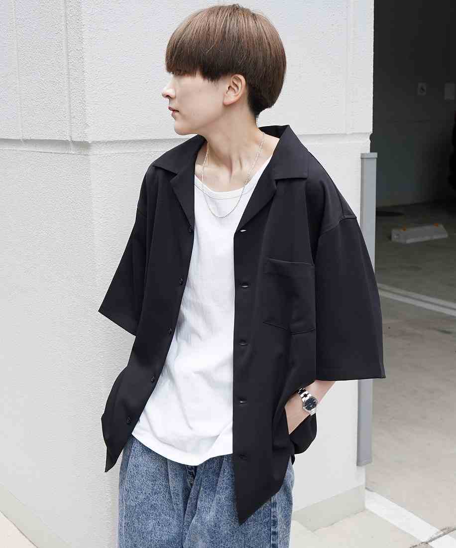 高級感のある上質なオープンカラーシャツ。