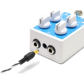 ストレートプラグの根元には「2段階スペーサー」を設けることで、DCジャックが筐体の奥まった位置にある場合でも使用可能になりました。2段階スペーサーのストロークは全長4.5mmもあるので、あらゆるエフェクターのDCジャックに対応します。