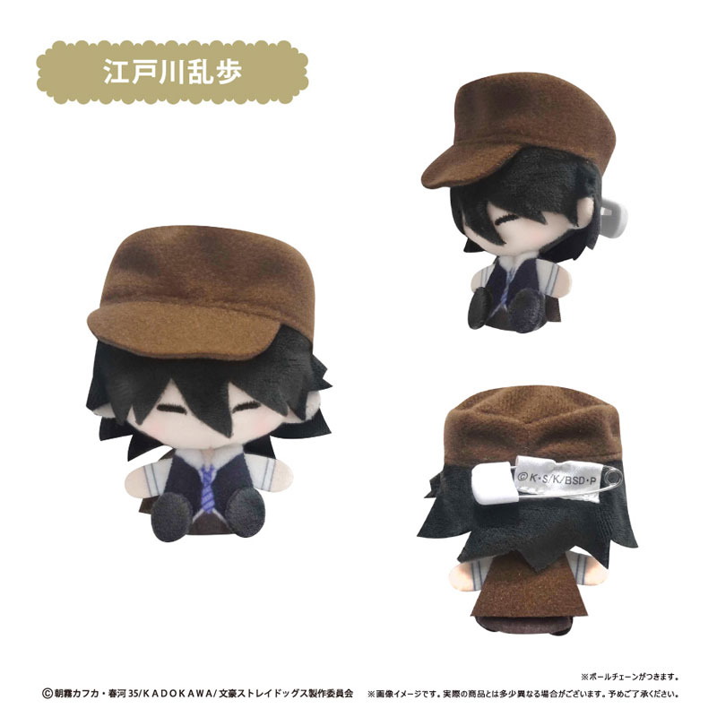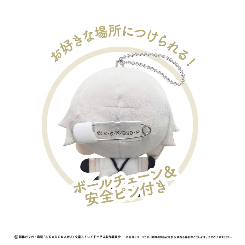 1BOX購入で全6種揃います。 TVアニメ『文豪ストレイドッグス』より小さめサイズのマスコットが登場♪ ボールチェーン&安全ピン付きなのでお好きな場所につけられます。