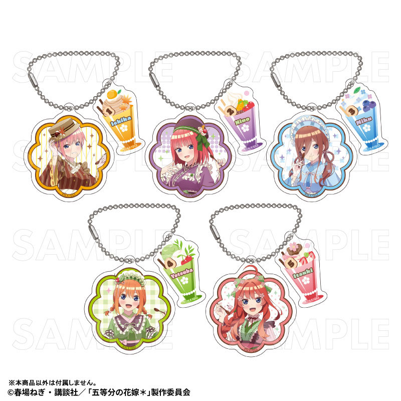 「和パフェドレス」をテーマに和装に身を包んだアクリルキーホルダーです。 五つ子とモチーフがそれぞれセットになっています。