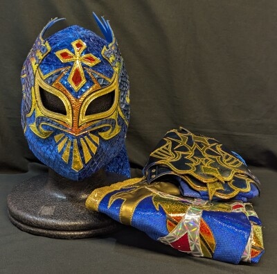 プロレスマスク プロレスコスチュームセット【ミスティコ (銀特殊×金メタフチ)】本人使用 サイン入り