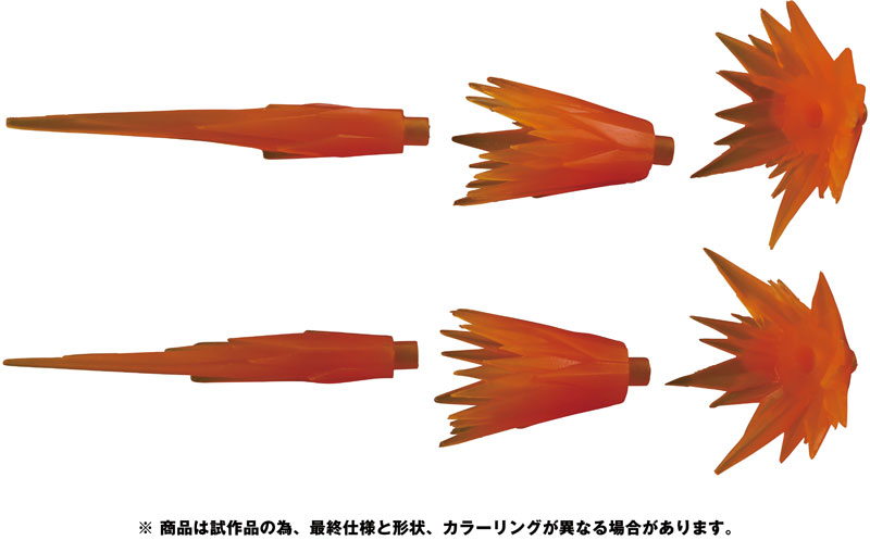 エフェクトパーツ、ウェザリング、武器やエフェクトパーツを装着可能な3mmボスと5mm穴、幅広い関節可動域によりリアルな戦闘シーンを再現。