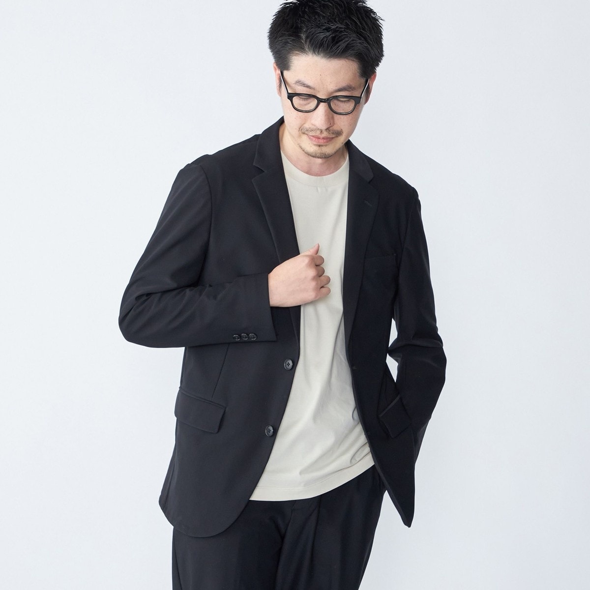 シワになりにくくストレッチ性・キックバック性に優れており、型崩れが起きにくいイージーケア素材です。