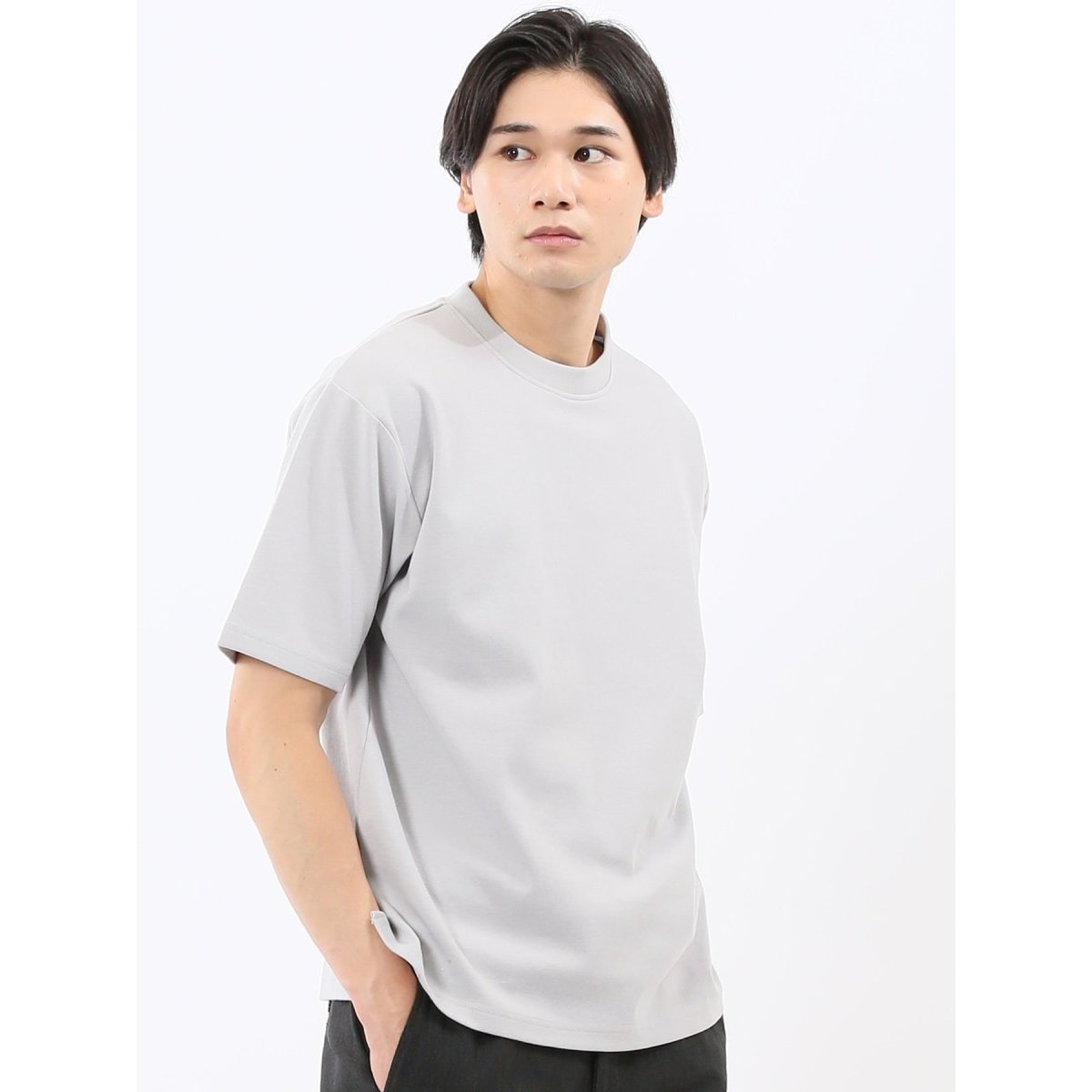 シンプルなデザインで着回しやすい、クルーネックの半袖Tシャツです。衿元のリブ切り替えと両サイドのスリットがポイント。一枚で着るのはもちろん、ジャケットやシャツ、ベストのインナーとしても便利なアイテムです。