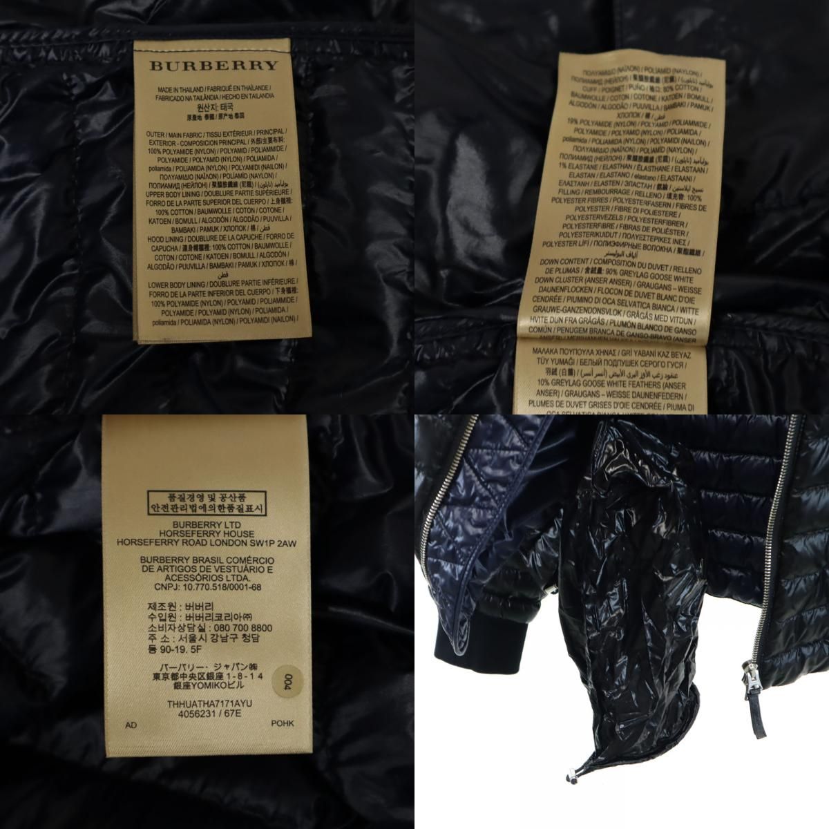 バーバリー 中綿ジャケット 48 ブラック系 BURBERRY コンパクト収納可能 メンズ