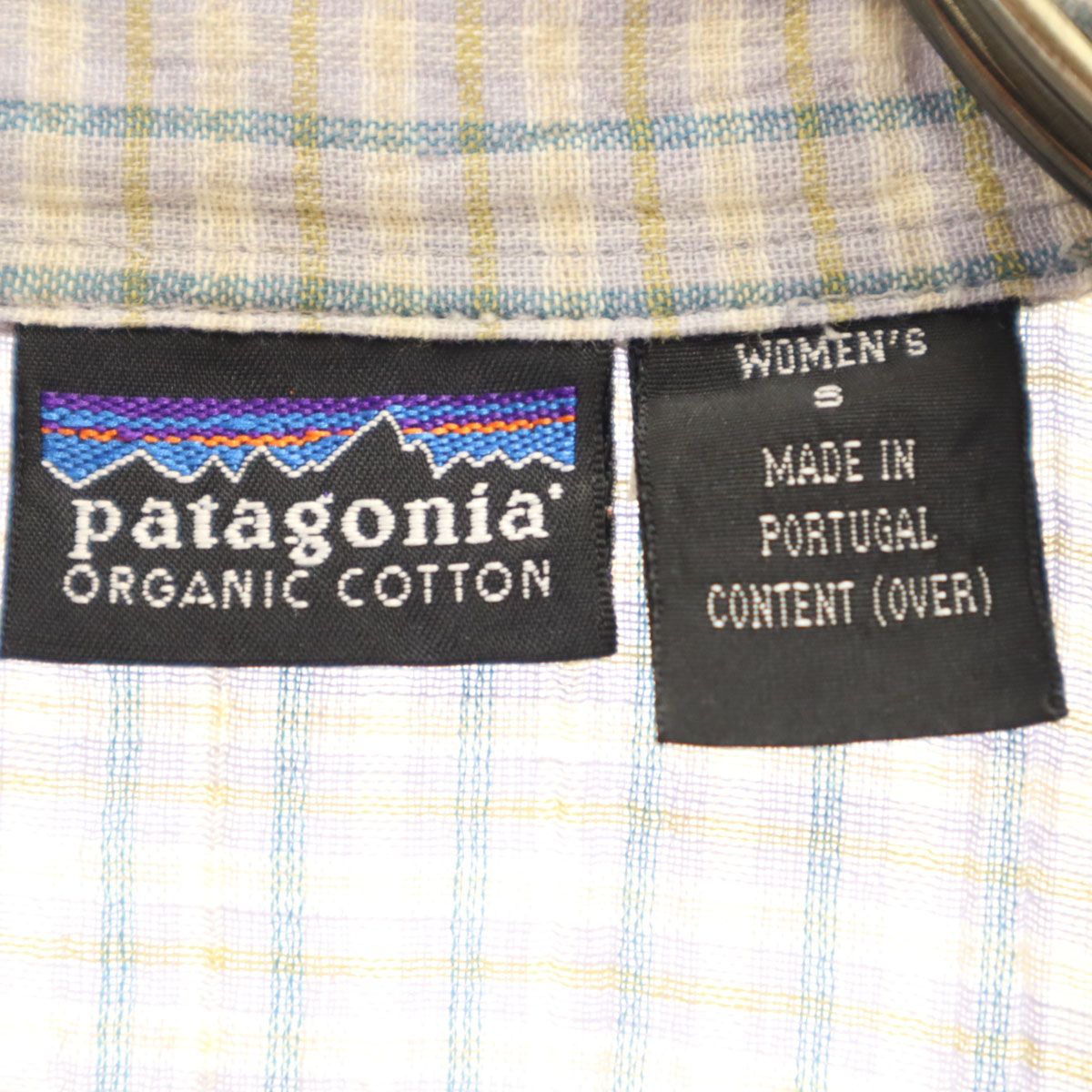 パタゴニア チェック 半袖 オープンカラー シャツ S ブルー系 patagonia RN51884 アウトドア レディース