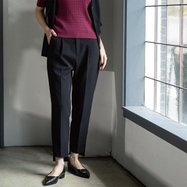 ・すっきりとしたタックテーパードシルエットに、裾に前後差を付けトレンド感を出したテーパードパンツ。