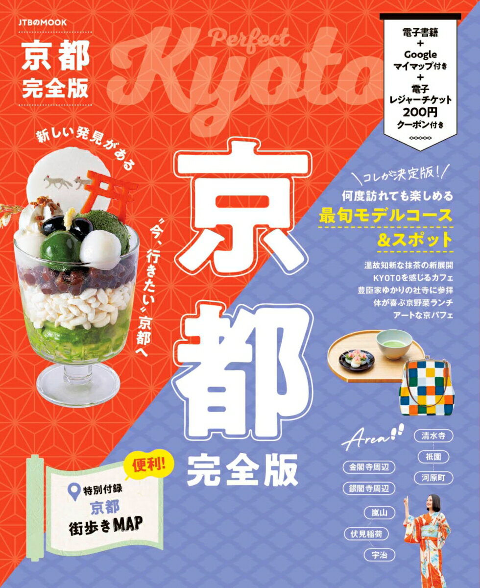 ◎スマホやタブレットで使える便利な電子書籍付き◎電子レジャーチケット「200円引」でお得旅【京都旅の全てが詰まった一冊!】これが決定版!“今、行きたい”京都の大事典。何度訪れても楽しめる、最旬スポットからグルメ・スイーツ・観光名所などの情報まで、208ページ+別冊と大ボリュームで紹介。京都旅はこの1冊でパーフェクト!<おもな特集内容>【巻頭特集】これが決定版 何度訪れても楽しめるBest of KYOTO【特集1】1Dayモデルコース ・ザ・王道 清水寺・衹園周遊コース・世界遺産数珠つなぎコース・名建築・美景色巡りコース【特集2】最旬スポット・温故知新な抹茶の新展開・話題のテイクアウト&“新顔”みやげ・フォトジェニックな社寺巡り・豊臣家ゆかりの社寺に参拝etc.【巻中特集】最旬 京都みやげ帖・こだわりのあんこ菓子・可愛すぎる!ネオ和菓子・間違いないテッパン 王道みやげ・洋菓子もハイレベル 京のクッキー缶・長年愛される老舗の 京漬物etc.<王道テーマも充実>●観光清水寺/伏見稲荷大社/金閣寺/仏像/お寺アート/ご利益・縁結び/ライトアップ/京都の四季 etc.●グルメ京野菜ランチ/京弁当/モーニング/ベーカリー/豆腐・湯葉/おばんざい/町中華/川床 etc.●スイーツ町家カフェ/ネオ茶室/ロケーションカフェ/抹茶パフェ/かき氷/レトロ喫茶 etc.●ショッピング京雑貨/手作りの逸品/紙モノ・文具/コスメ etc.●エリアガイド衹園/錦市場/嵐山/哲学の道/京都御所/岡崎/宇治/伏見/貴船・鞍馬 etc.●体験お寺体験/はんなりカルチャー体験/京都鉄道博物館/ニンテンドーミュージアム/祭・イベント etc.●ホテルワンランク上のこだわりホテル/町家ステイ/シティホテル etc.<特別付録>取り外して持ち歩ける、京都完全MAP付き!観光に便利なバス&地下鉄路線図も掲載※200円クーポンの利用期間は図書の販売終了まで