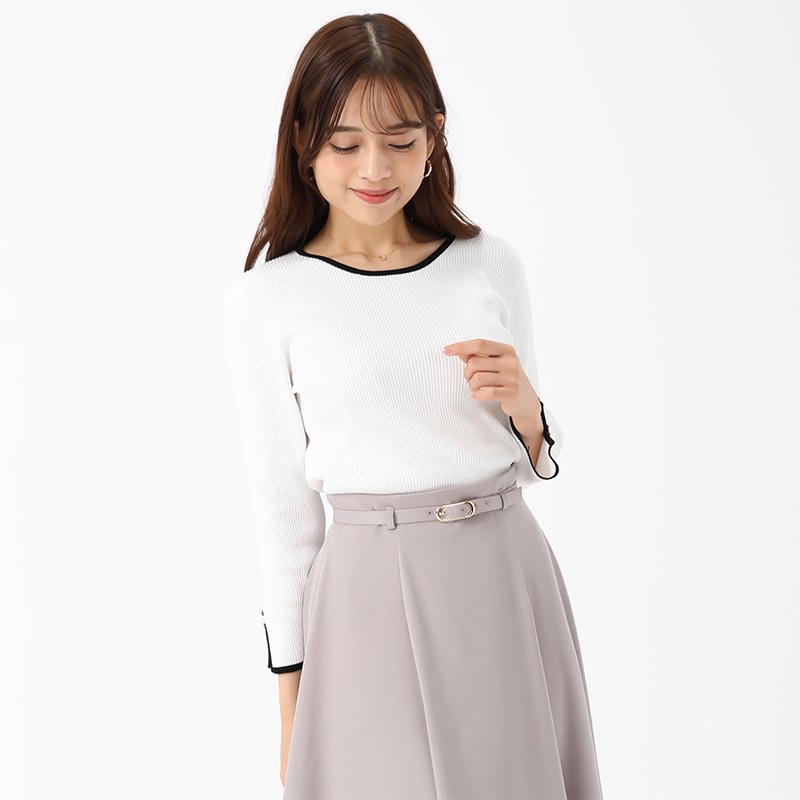 【WEB限定アイテム】表情感を演出する配色デザインが魅力的なニット。伸縮性のあるリブ素材を使用しており、タイトなシルエットを描きます。袖口のスリットがさりげない抜け感をプラス。どんなボトムスにも合わせやすく、着回しの幅が広がるアイテムです。■fabric透け感[無し]裏地[無し]伸縮性[有り]生地の厚さ[普通]
