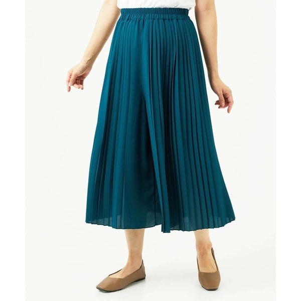 【イッカ】プリーツワイドパンツ イージー ガウチョ M スカーチョ ゴム 洗える