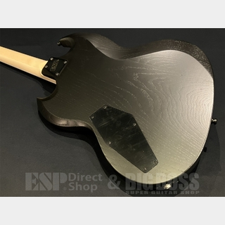 ボディにはレギュラーのVIPERモデルでは初めてアッシュを採用しました。ボディ厚は40mmと一般的なギターよりは若干薄く設定されてます。またベベルドカットの効果もあり抱えた時の取り回しは抜群です。ネックはハードメイプル、指板はローズウッドで、ボディへはデタッチャブル方式でジョイントされています。ペグはゴトー製のロック式MG-Tタイプ、ブリッジはチューンマティックタイプ、スタンダードスタイルのテールピースを組み合わせたトラディショナルな仕様です。ピックアップはブリッジポジションにセイモアダンカン SH-4 JBを1基のみ搭載。ボリュームのみのシンプルなコントロール構成となっています。