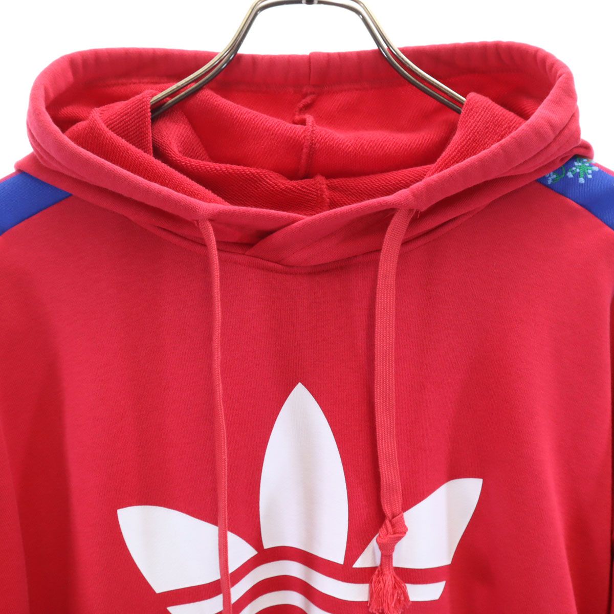 アディダス トレフォイルロゴ 花柄 長袖 スウェットパーカー M レッド adidas メンズ