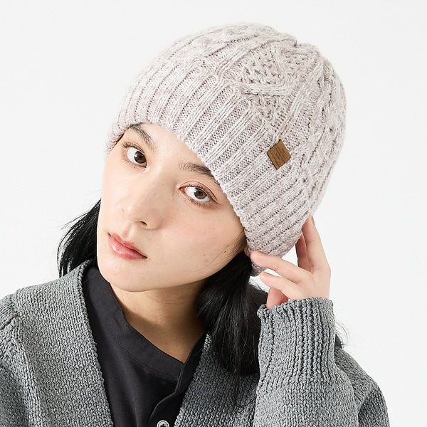 ケーブル編みのニットキャップにミックス糸バージョンが登場です。