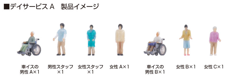 Nゲージ 【セット内容一覧】 車イスの男性A×1 車イスの男性B×1 男性スタッフ×1 女性スタッフ×1 女性A×1 女性B×1 女性C×1