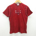C■日本製■シナコバ/SINA COVA ロゴイラストデザイン ステッチ 半袖tシャツ【F】赤/MENS■26【中古】
