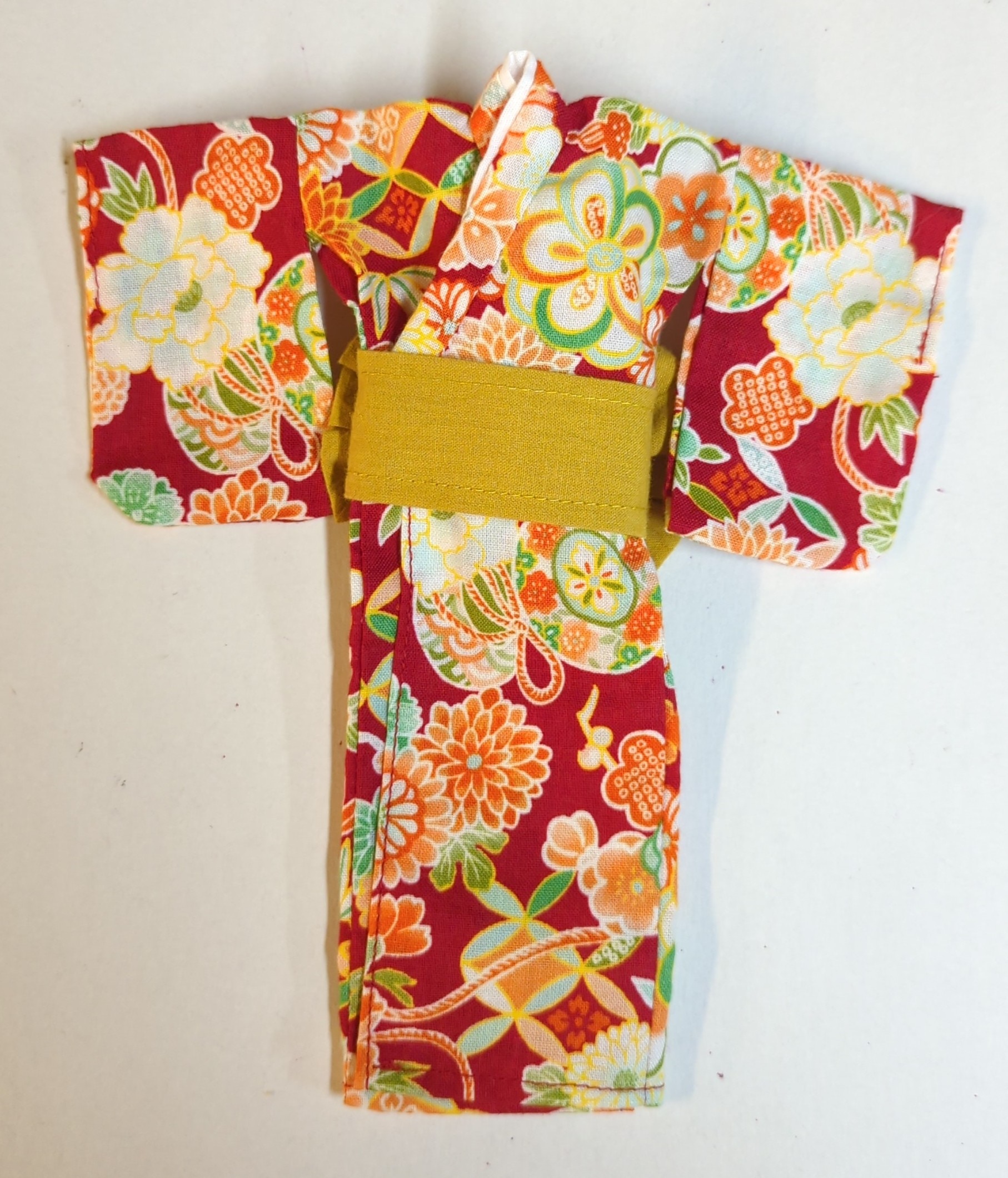 シェリーメイSサイズ用 手作り 浴衣コスチューム ベージュ花柄