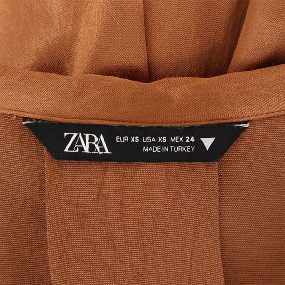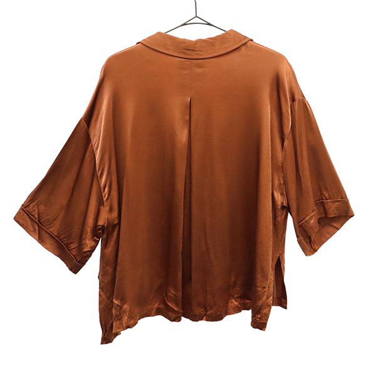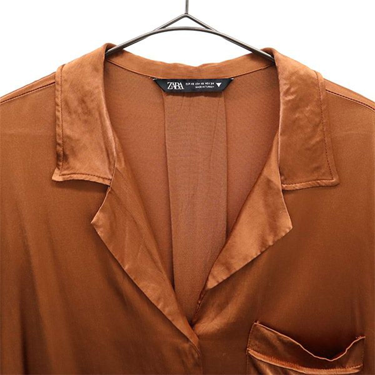 ザラ 半袖 サテン オープンカラーシャツ XS ブラウン ZARA レディース