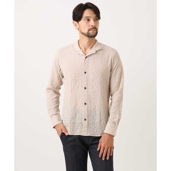 ・生地の織り方を工夫し、大きめの凹凸感をもたせた「シアサッカー」調の仕上がりに。陰影のある豊かな表情と、肌離れの良い清涼感を両立しています。