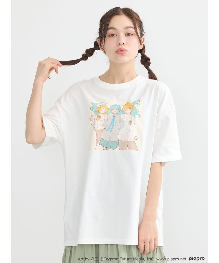 『初音ミク&鏡音リン・レン』× earth music&ecology Japan Label イラストレーターの八三さん描きおろしの初音ミク、鏡音リン、鏡音レンのイラストをプリントしたTシャツ。 さらっと着られる肌触りの良い綿素材で、着回ししやすいホワイトカラーでご用意しました。 トレンド感のあるジェンダーレス仕様のビッグシルエットで、スタンダードなクルーネックはどんなアイテムともバランスよくスタイリングしていただけます。