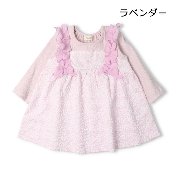 凹凸のある花柄生地が可愛いチュニックTシャツ。フリルとリボンが女の子らしい!1枚でコーディネートが決まる重ね着風デザイン。後ろ襟ぐりはゴム仕様になっているので、着脱もスムーズに出来ます!同じ花柄生地のチュニック(W64900)、クレセントのジャケット(N64180)があるので、姉妹でお揃い、ペアコーデ、リンクコーデもおすすめ!おそろいアイテムはギフトやプレゼントにも人気です!【アイテム】ロングスリーブ 長袖 プレゼント ギフト プルオーバー 赤ちゃん服 ベビー服 贈り物 トップス 無地 シンプル ガーリー カジュアル お洒落 オシャレ かわいい 可愛い 普段着 デイリーウェア お出かけ着 子ども こども 女児 女の子 ガールズ キッズ ベビーサイズ 幼稚園 保育園通園 2025年秋冬物新作 丸高衣料 ラベンダー パープル 薄紫色 ピンク フラワー りぼん 姉妹 お揃い オソロ おそろい お揃いリンク リンクコーデ ペアルック キッズズー