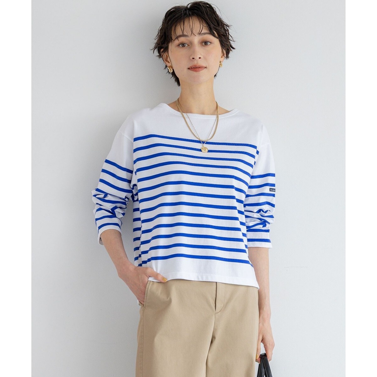 ■素材肉感を拾わない中肉天竺素材を使用しており、生地の厚みがありながらも着心地の良い伸度を持つのArmor-luxならではの品質です。カジュアルになりすぎないパネルボーダーは23区オリジナルデザインで、上品な大人のカジュアルスタイルを演出します。