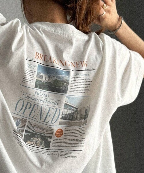 さらっと着られて主張しすぎない、ゆったりシルエットがちょうどいい存在感。ニュースペーパー風のバックプリントが目を引く、こだわりの1枚です。