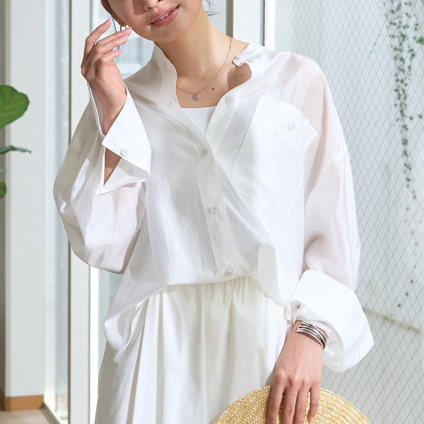 春ぴったりな、明るいカラーが魅力のシアー素材シャツ。