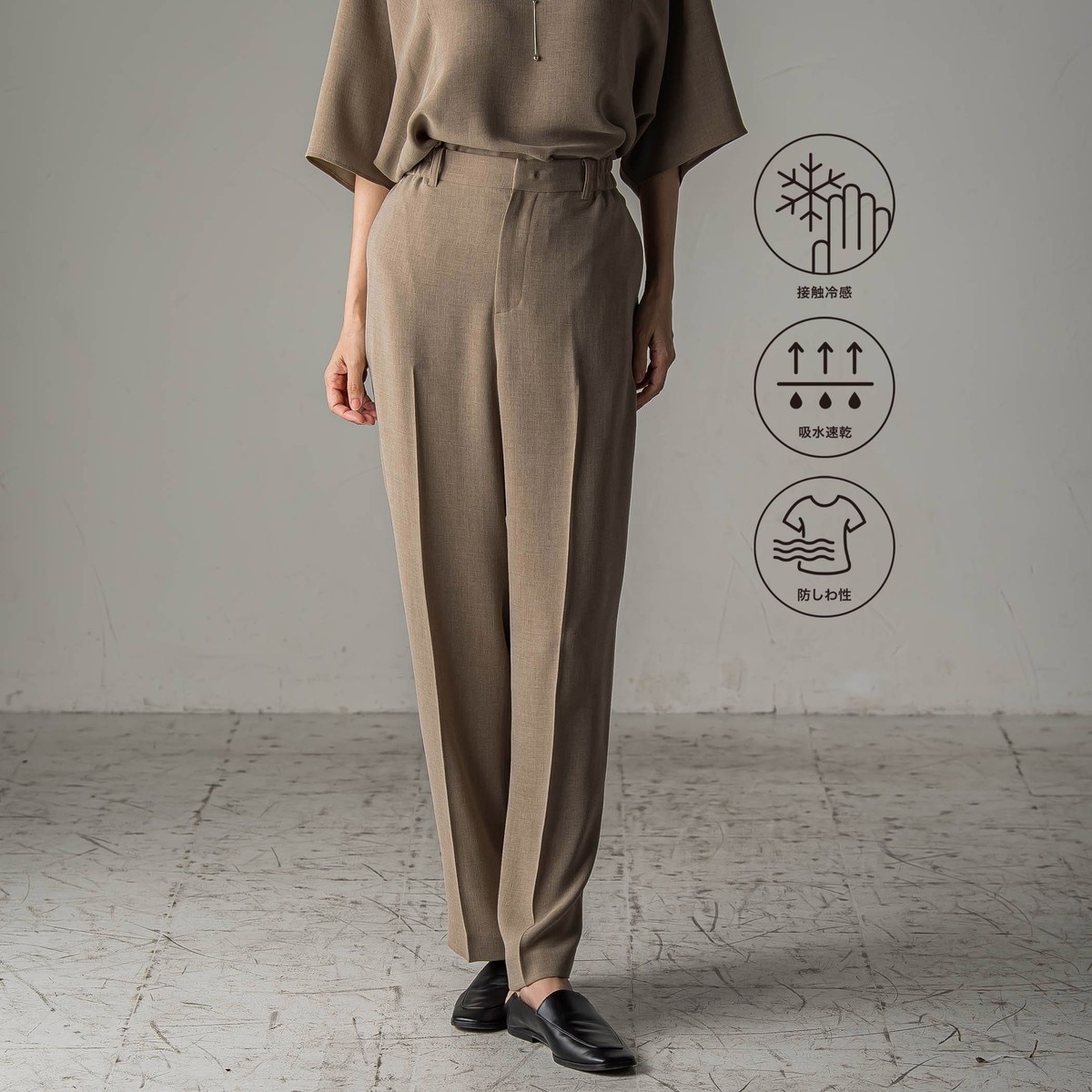 【接触冷感/UVカット】リネンライク2タックワイドパンツ【セットアップ対応/アンチピリング】