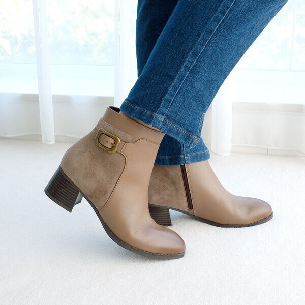 本革 / 25.0cm以上あり / 4.5cm~7.5cm未満 / 太めヒール / ふつう(D・E・2E) / ラウンドトゥ / ショート(筒丈~22cm未満) / カジュアル / 中敷クッション入り / 滑りにくい靴底 / ゴム底/合成底