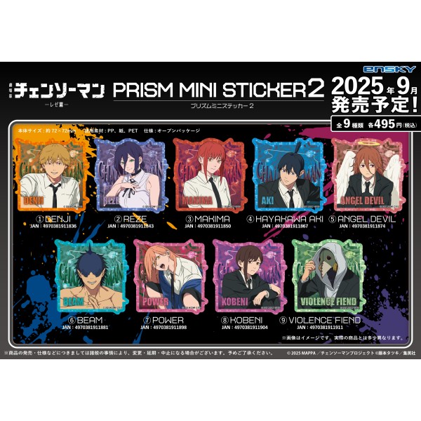 2025年9月19日(金)公開予定の劇場版『チェンソーマン レゼ篇』より、キラキラオーロラ素材のホログラム紙を使用したミニステッカーが新規描き下ろしイラストのデザインで新登場!