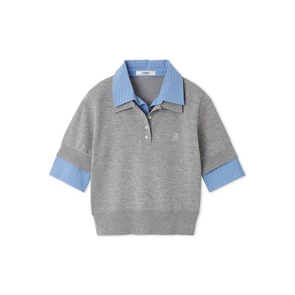 すっきりとしたキレイめなニットポロシャツとコットンシャツを重ね着しているようなこなれ感のあるデザインが魅力のシャツドッキングニットポロがお目見え。襟や袖口にのみシャツディテールをドッキングしているので1枚ですっきりと着られるデザインです。トレンド感のあるニットポロの襟とシャツ生地の襟とのレイヤードで、顔周りを華やかに演出。ニット生地とシャツ生地の奥行きのある配色使いですっきりと着映えます。胸元にはSNIDELロゴ刺繍を添えてポイントに。