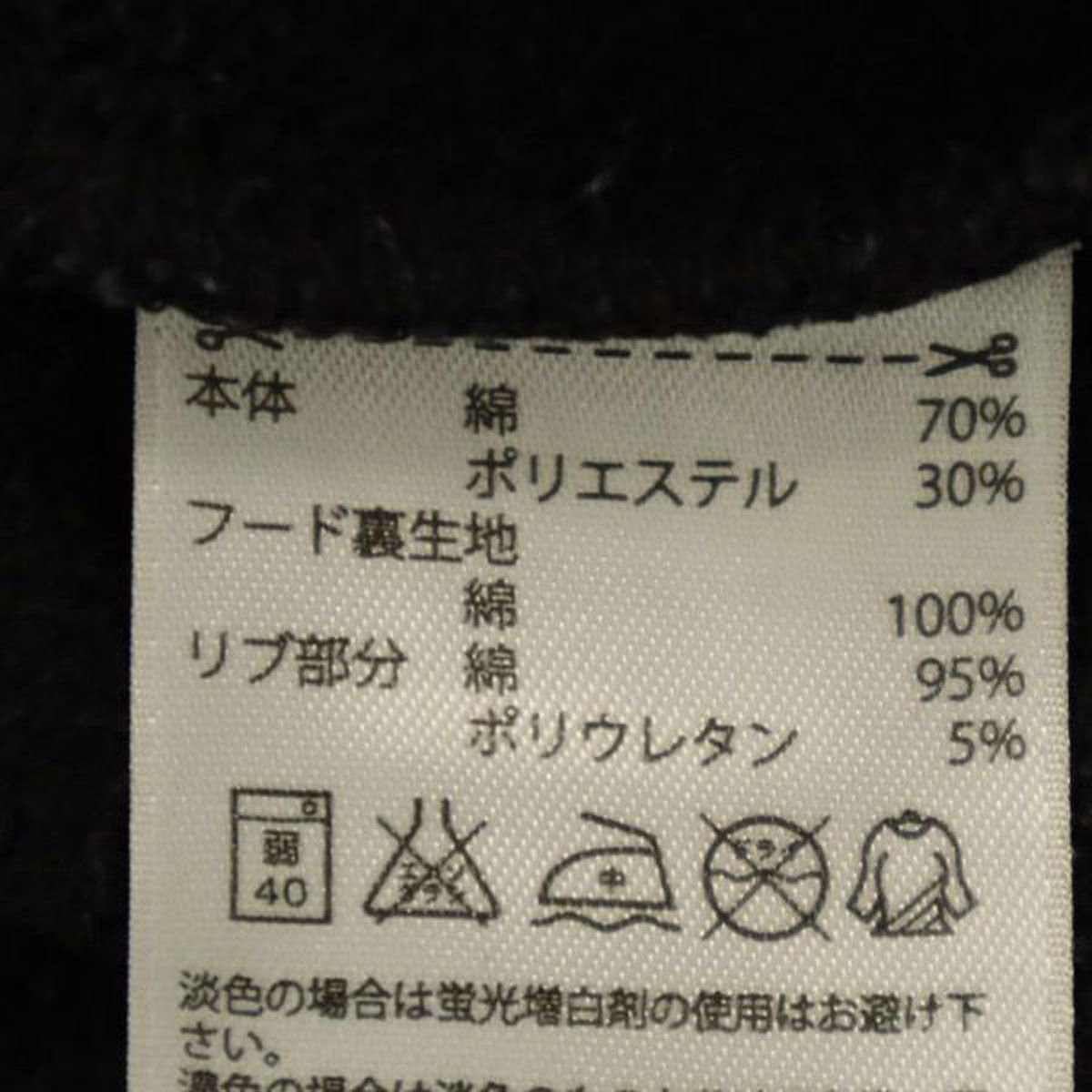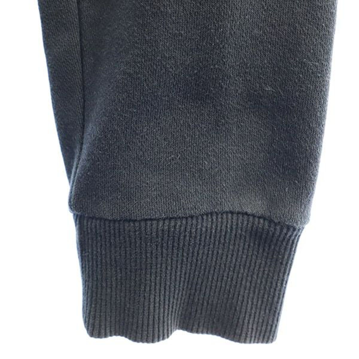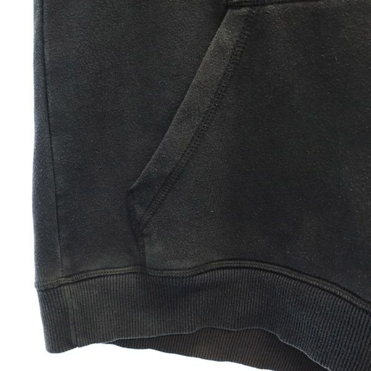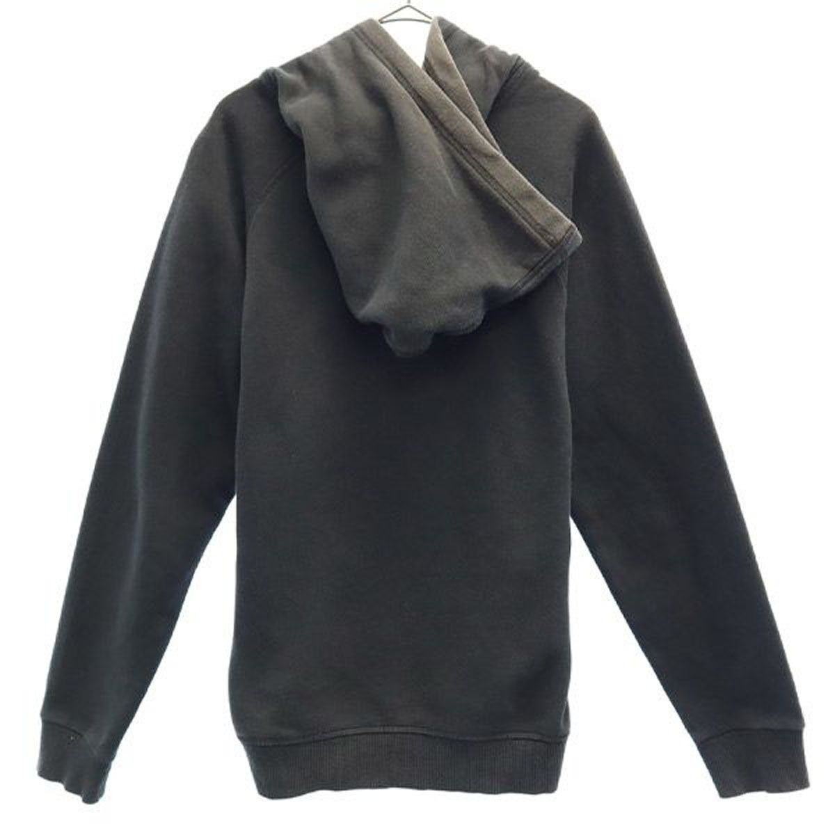 フード周りに紐が入っており調整可能です。裏起毛素材となっております。前身頃の胸元のプリントに細かなひび割れが見受けられます。全体的に色褪せが有ります。他、特に気になるようなダメージはございません。
