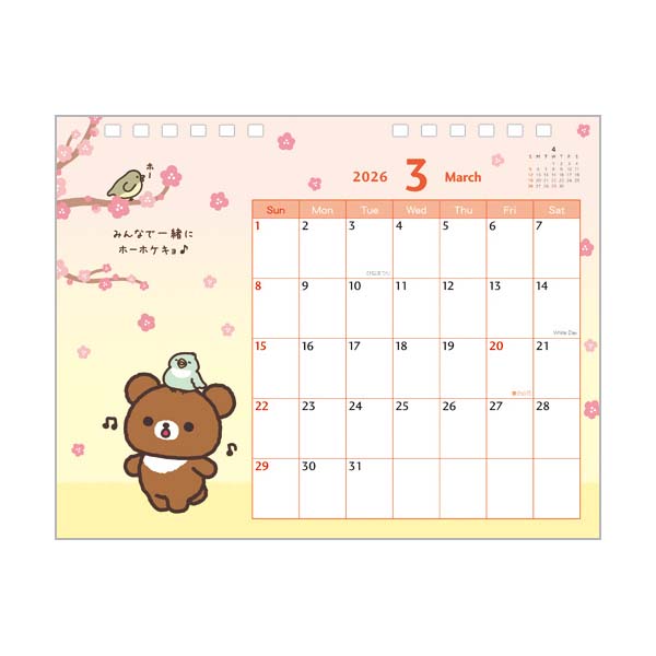 CD40301 リラックマ 卓上カレンダー[サンエックス]《発売済・在庫品》