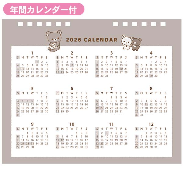 卓上ホワイトボード・カレンダー(リラックマ)(2026年1月始まりカレンダー)