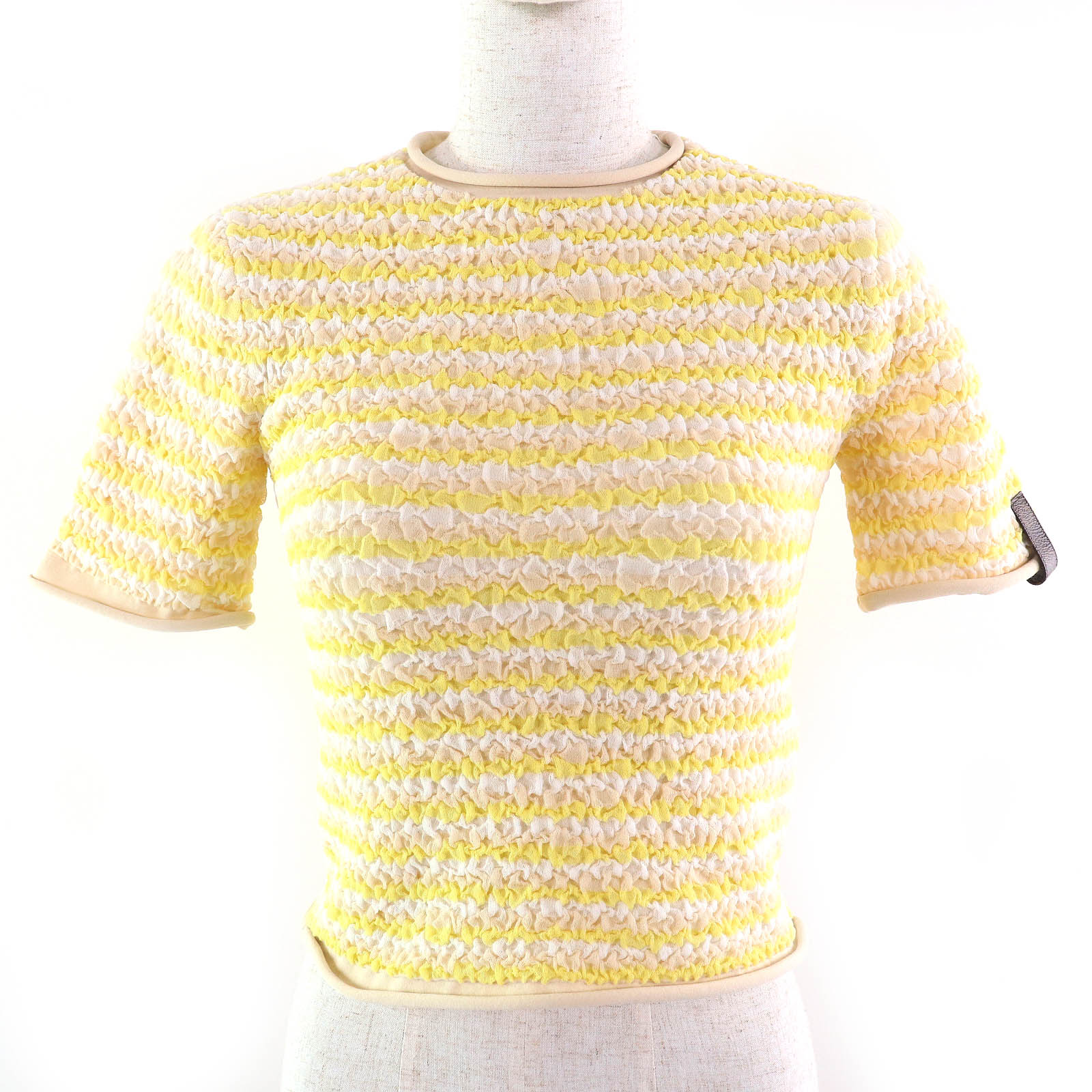 極美品☆CHANEL シャネル 22SS 23A P75264V22445 ウール100% ココマーク ビーズ装飾 クロップド丈 トップス マルチカラー 34 ハンガー・ガーメント付き イタリア製 正規品 レディース【中古】