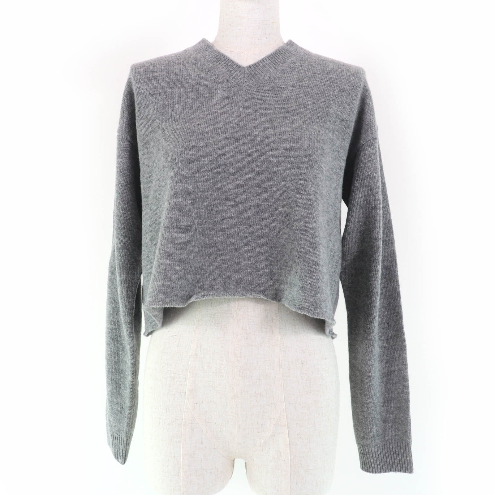 未使用品☆HERMES エルメス 3E2608D5 カシミヤ コットン 長袖 クルーネック ニット トップス パープル 38 イタリア製 レディース【中古】