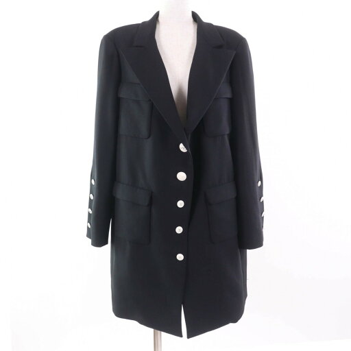 美品△CHANEL シャネル P50636 ココマークボタン コーティングパンツ テーパードパンツ ブラック系 40 イタリア製 正規品 レディース【中古】