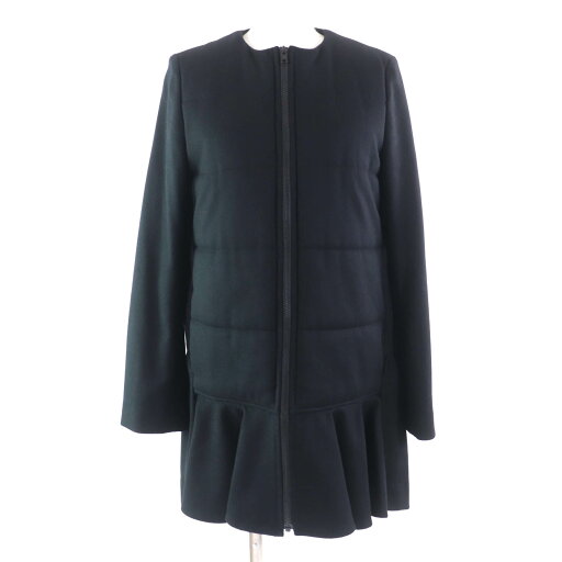 【美品】ヨーコチャン 切替 ノーカラー コート ロング ウール モヘヤ 黒 38