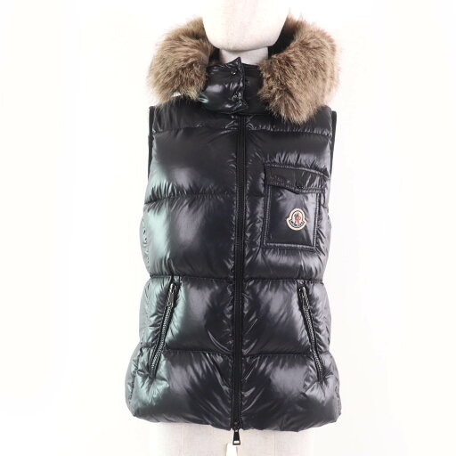 【美品】モンクレール ブラック ロング ダウン 軽量 ベルト付 ファー付