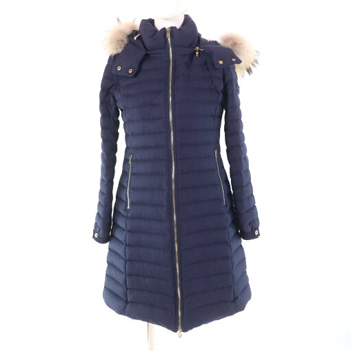 美品▼TATRAS タトラス MTA4SH4193 ウール カシミヤ ロゴワッペン・ファー付き フーデッド ダブルジップアップ ダウンジャケット ネイビー 2 正規品 メンズ【中古】