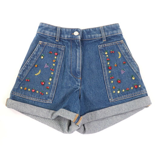 極美品☆RED VALENTINO レッドヴァレンティノ コットン 袖フリル バックリボン デニム ワンピース インディゴ 38 正規品 レディース【中古】