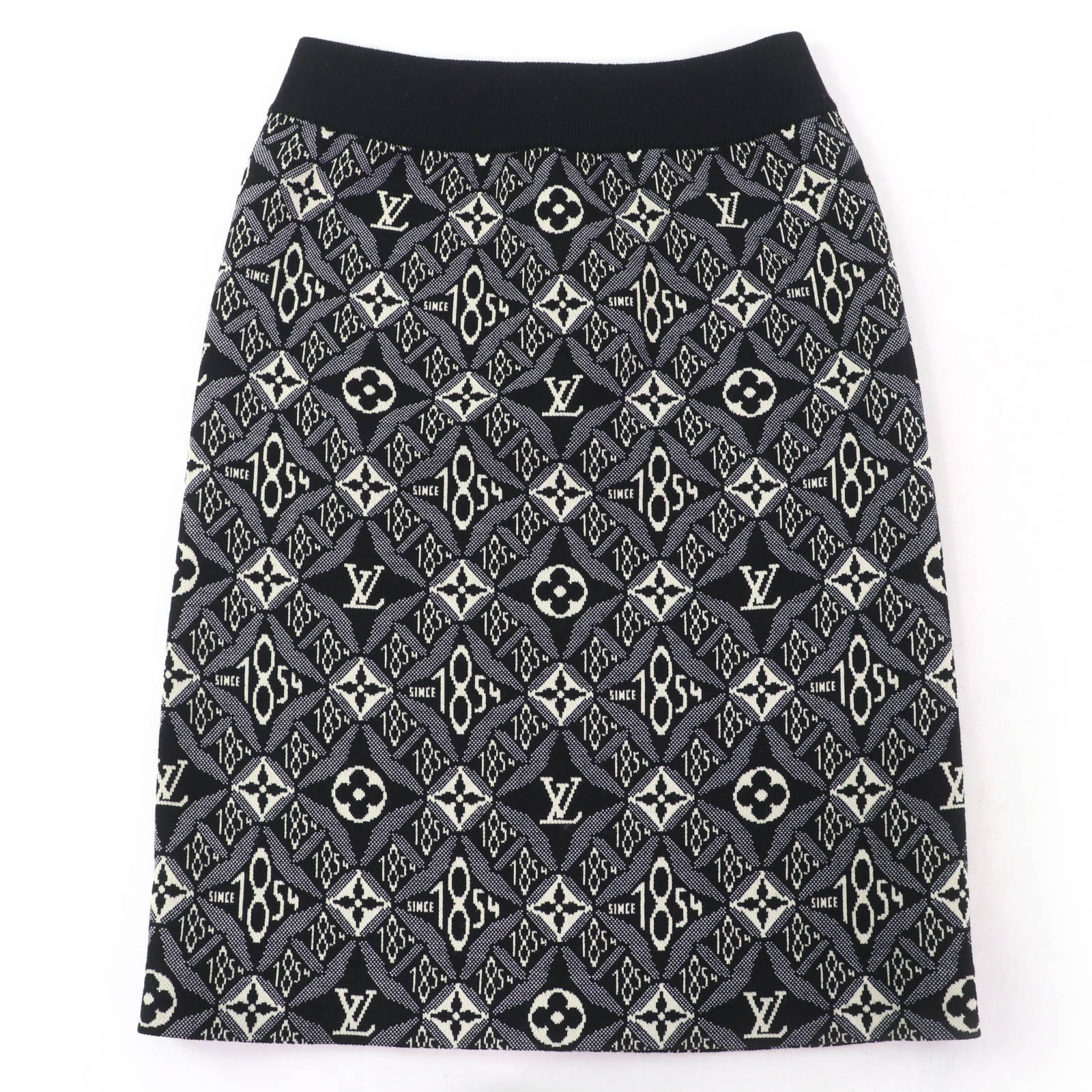 美品△LOUIS VUITTON ルイヴィトン シルク混 モノグラムフラワー ドット柄 バックジップ ミニ フレアスカート アイボリー ブラック XS イタリア製 正規品 レディース【中古】